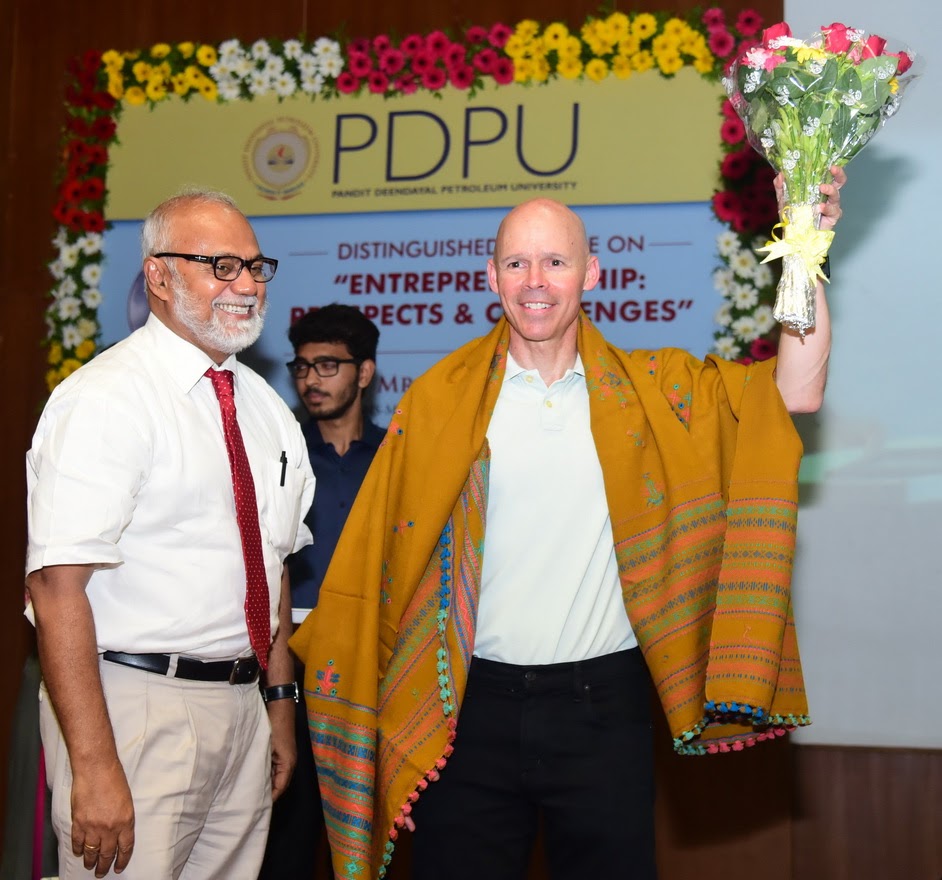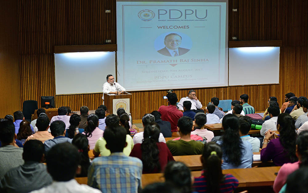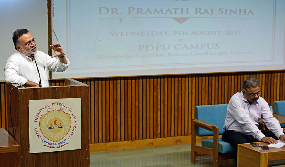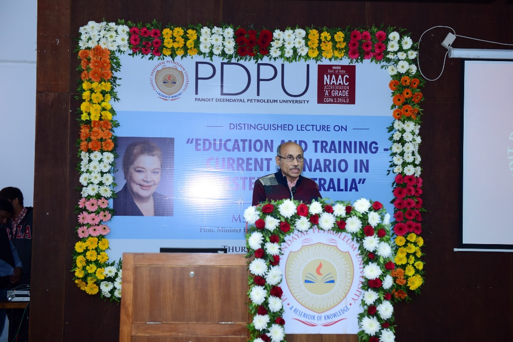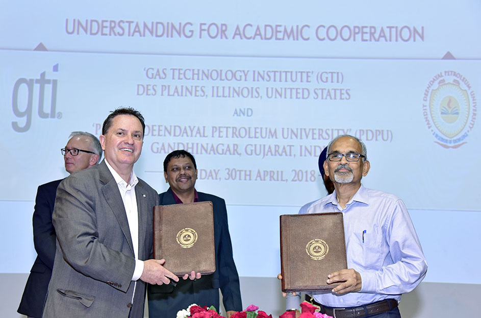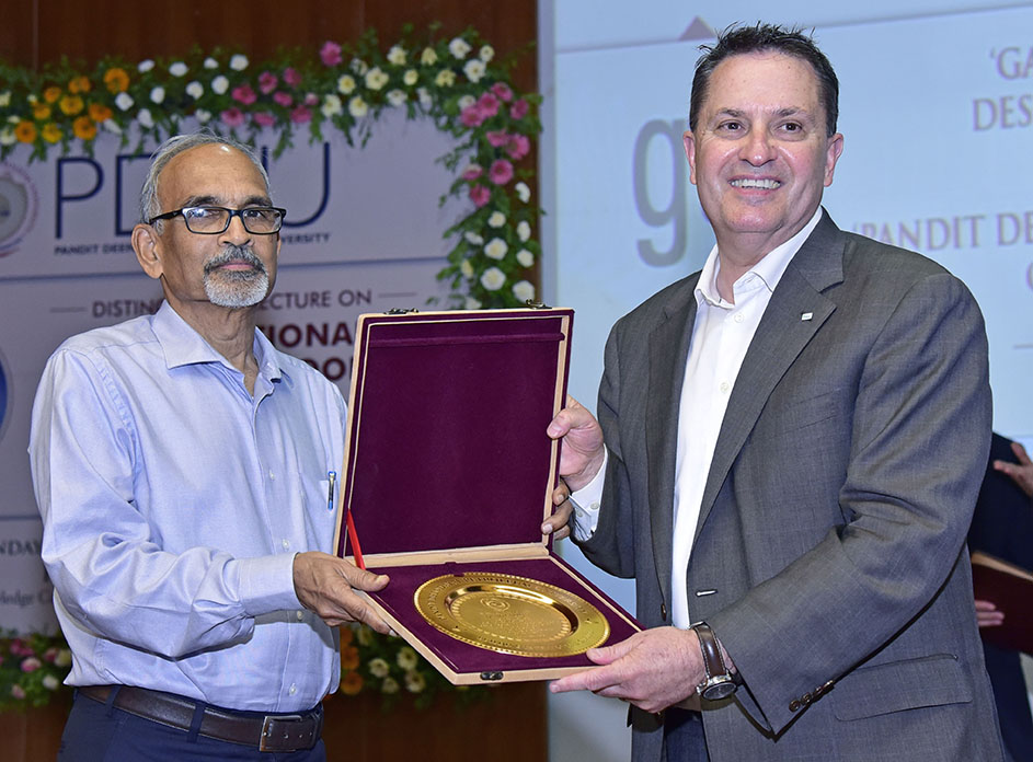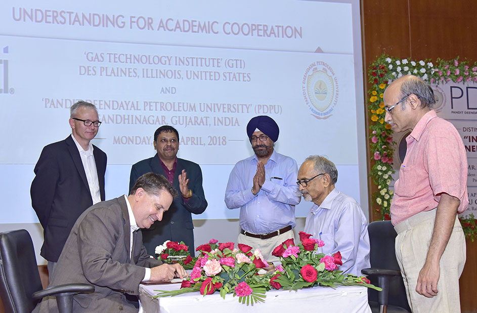 The discussion revolved around India’s target of improving 6% gas in energy mix at present to 15% by 2022. Mr. Carroll in his talk mentioned about his meeting with Prime Minister of India and his request to him regarding collaboration with PDPU. He emphasized the need of renewable energy and new energy such as Coal Bed Methane and Shale Gas.