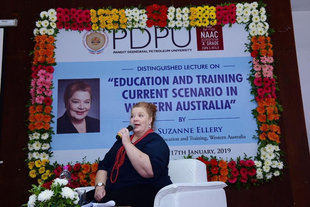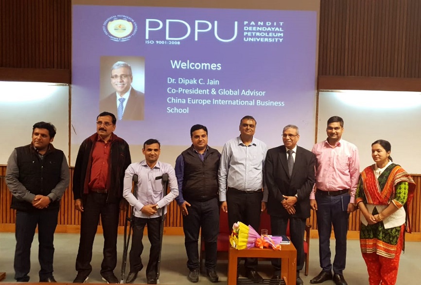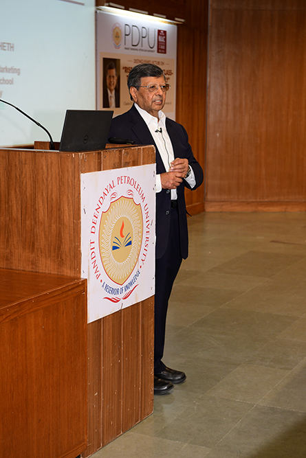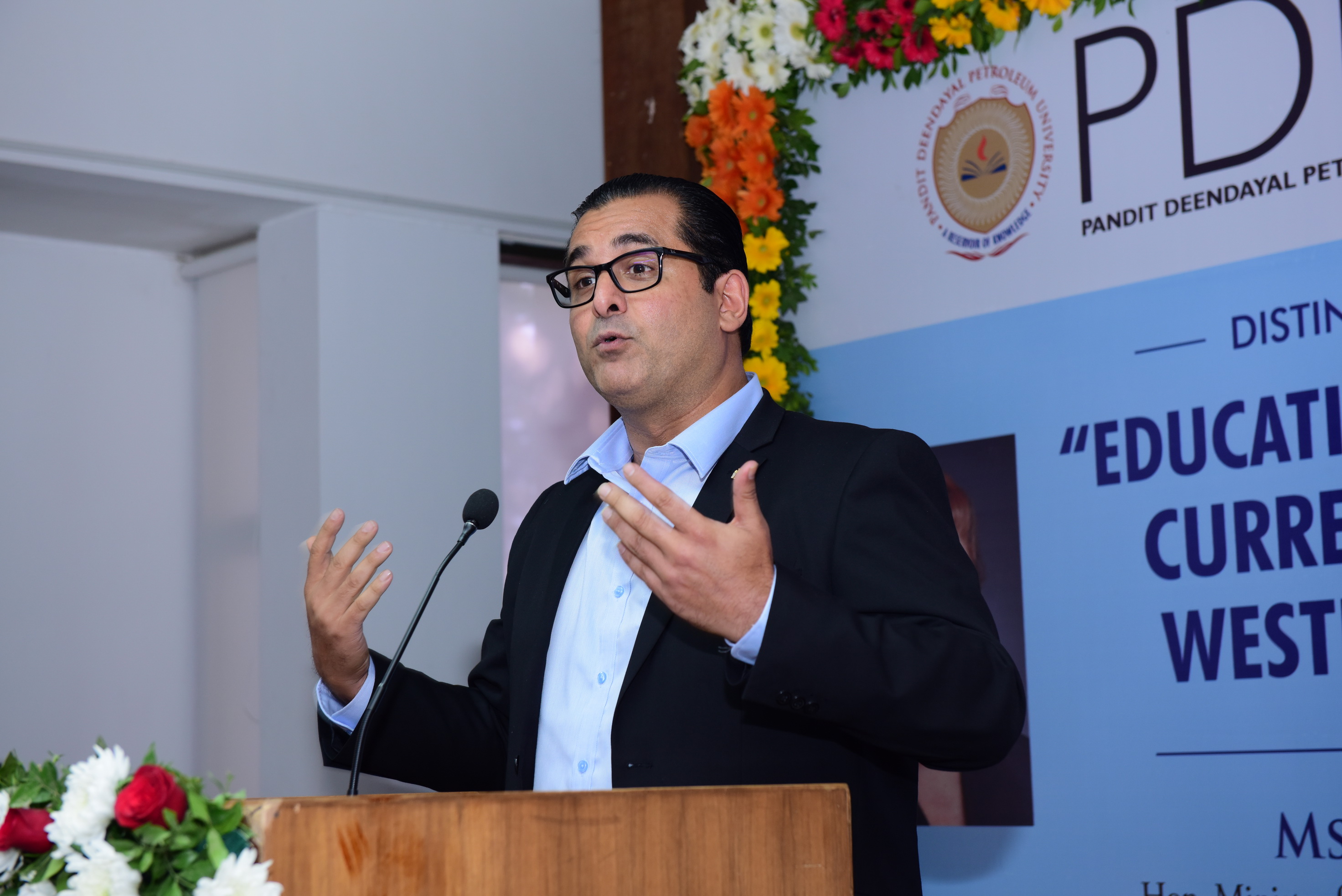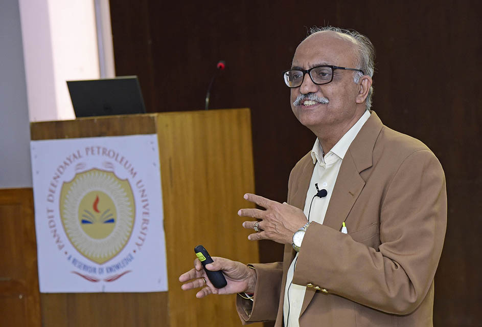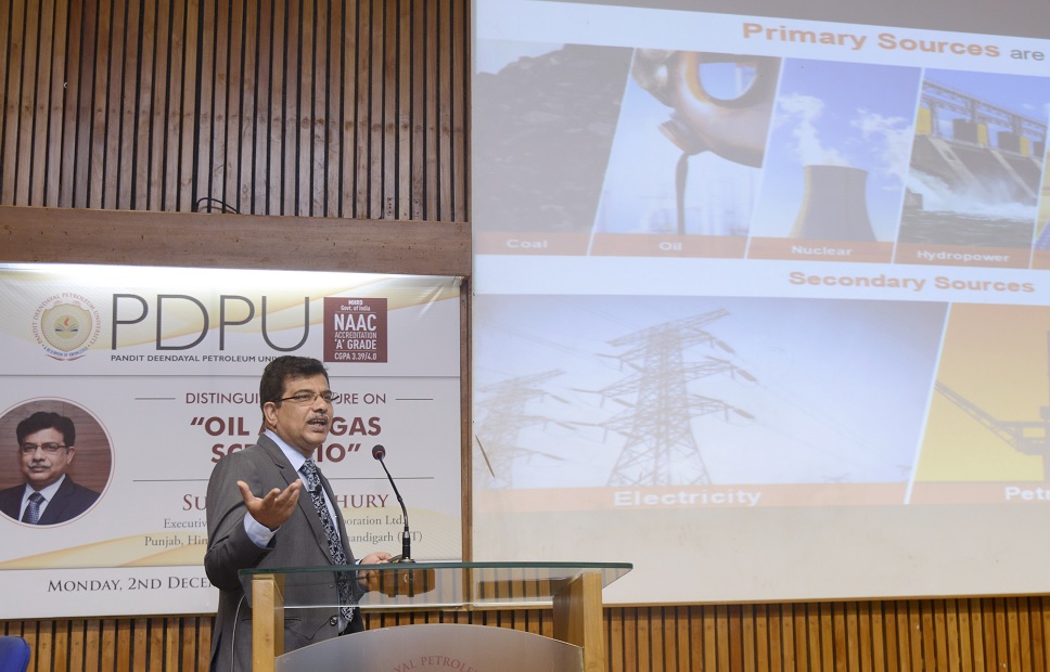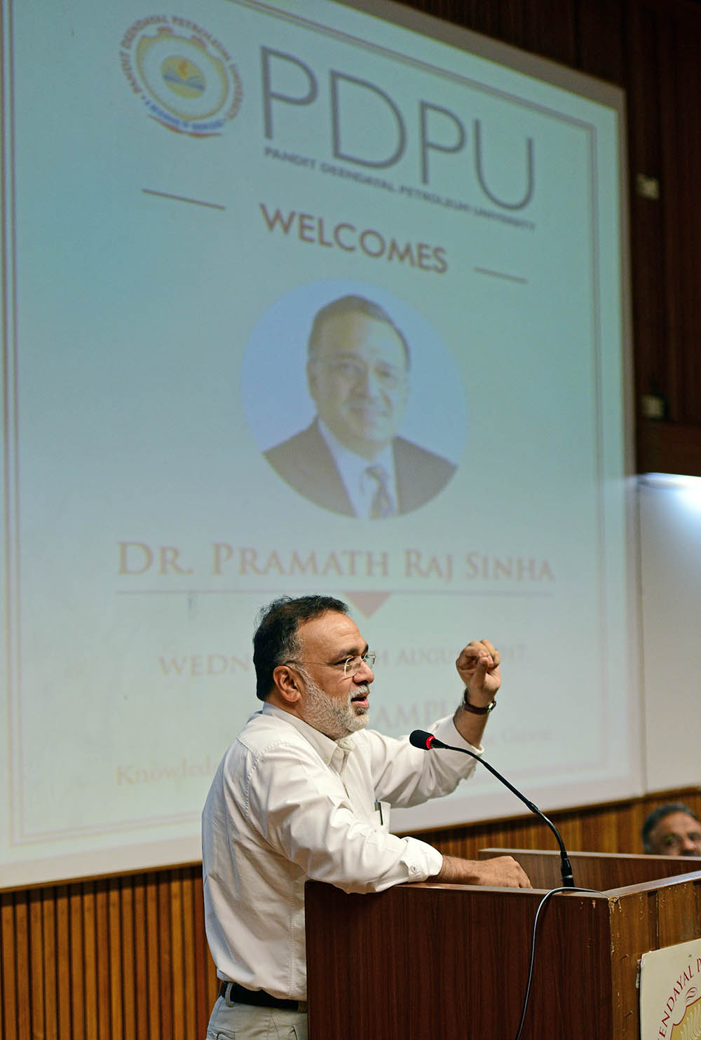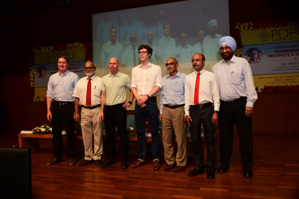 The discussion revolved around India’s target of improving 6% gas in energy mix at present to 15% by 2022. Mr. Carroll in his talk mentioned about his meeting with Prime Minister of India and his request to him regarding collaboration with PDPU. He emphasized the need of renewable energy and new energy such as Coal Bed Methane and Shale Gas.