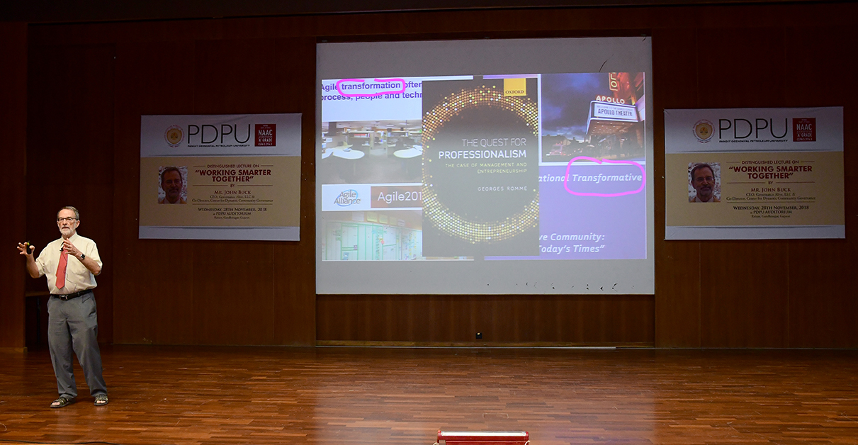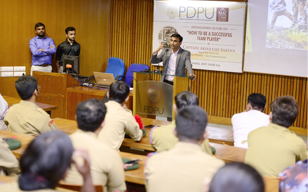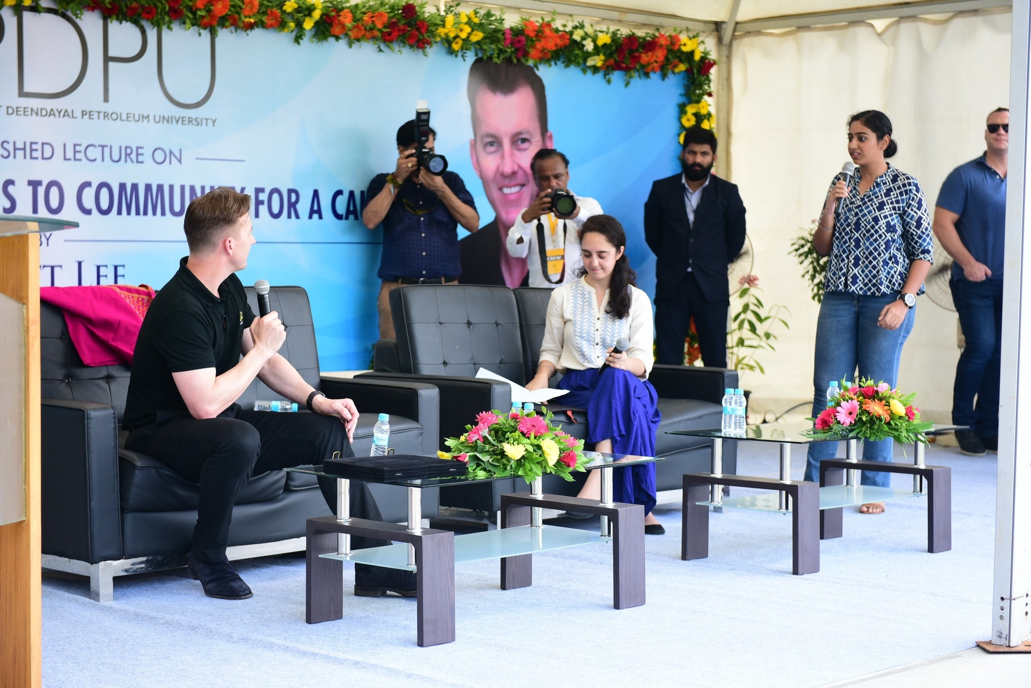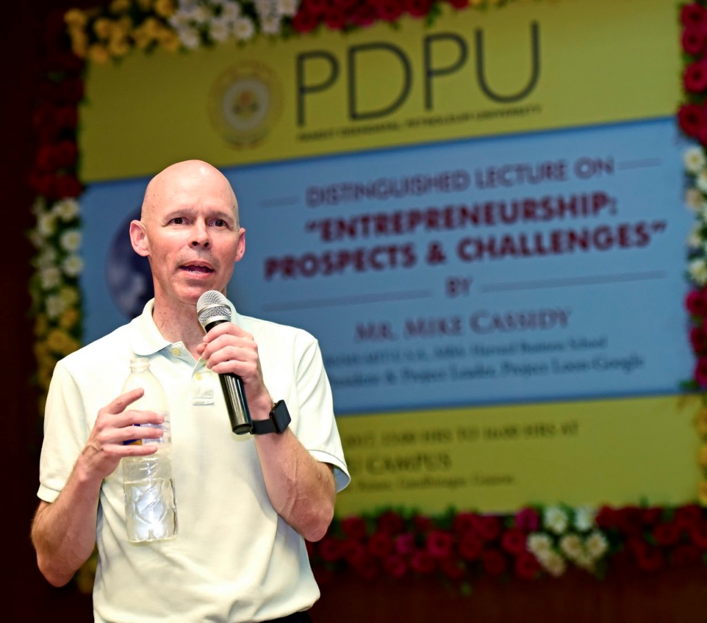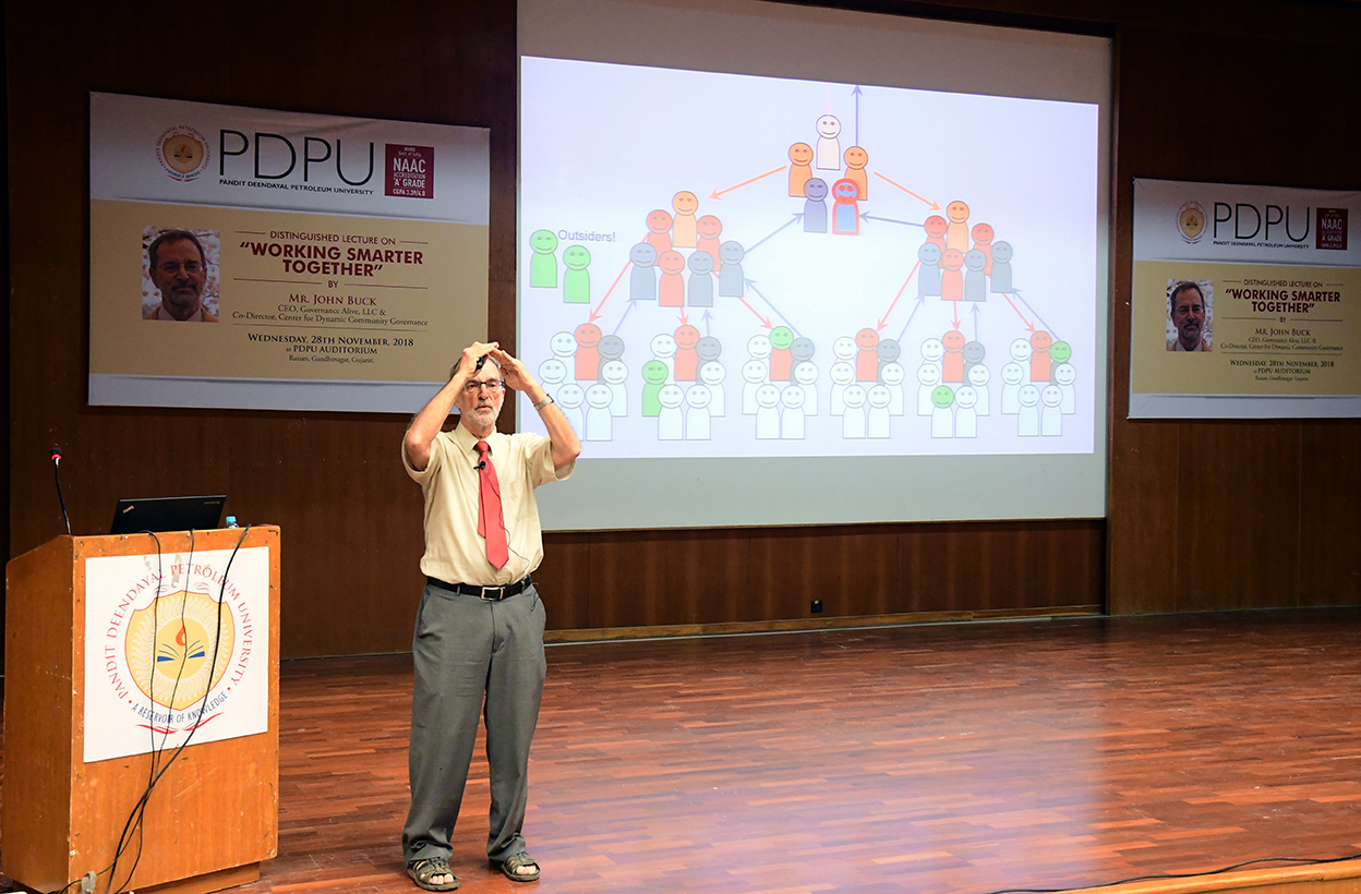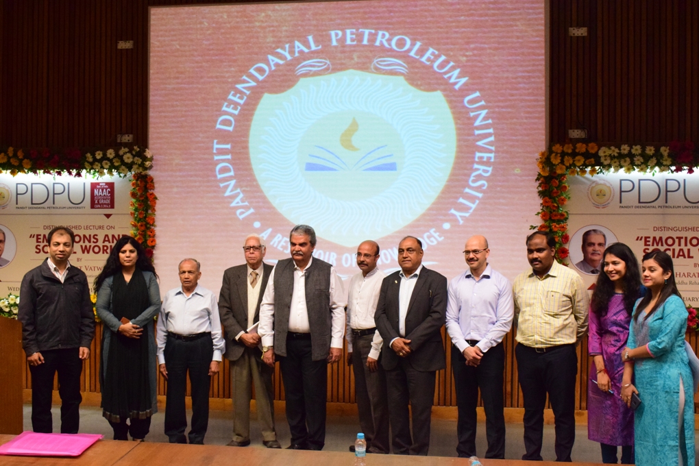 The discussion revolved around India’s target of improving 6% gas in energy mix at present to 15% by 2022. Mr. Carroll in his talk mentioned about his meeting with Prime Minister of India and his request to him regarding collaboration with PDPU. He emphasized the need of renewable energy and new energy such as Coal Bed Methane and Shale Gas.