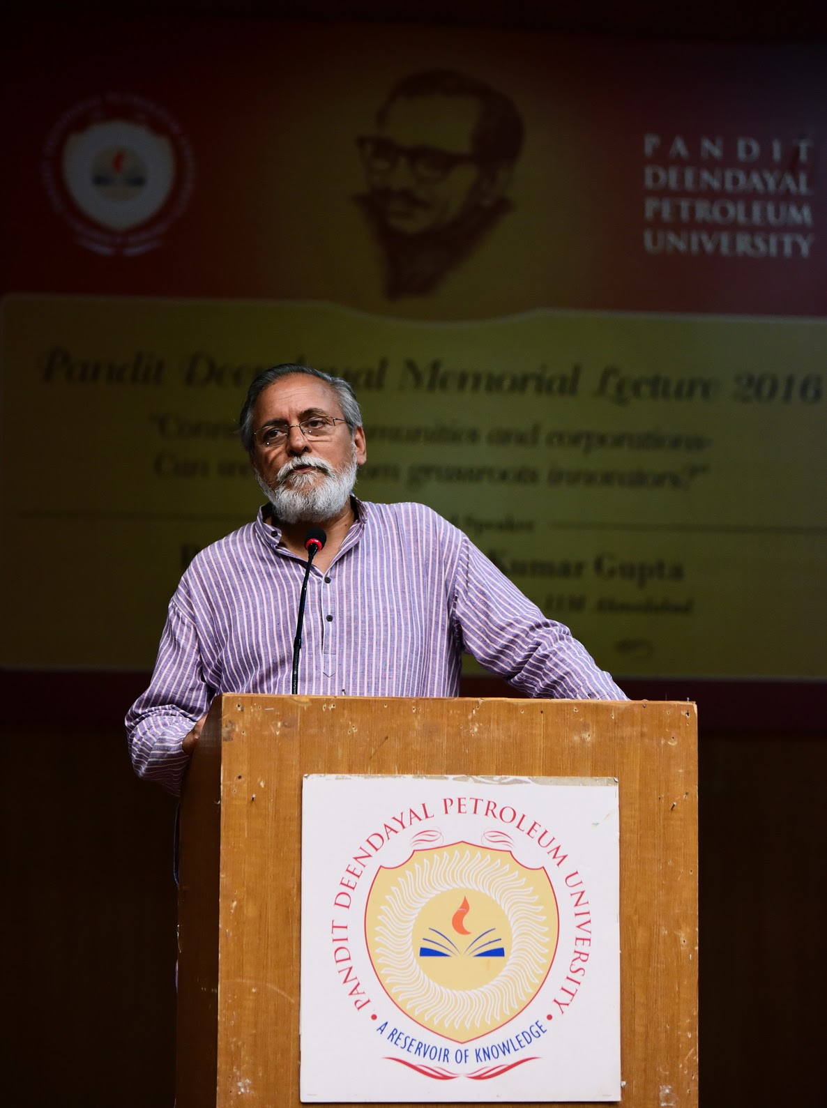 Honours: He received Best Researcher at IIMA, 2015, Humanistic Management Lifetime Achievement Award by the Humanistic Management Network, at the 73rd Annual meeting of the Academy of Management, USA, August 2013; Ph.D Honoris Causa, San Martin de Porres University, October, Peru; Doctor of Letters from Central University of Orissa, July, 2012; Hermes Award (May 2012), European Institute for Creative Strategies and Innovation, Paris; Padam Shri, 2004, civil award by The President of India; Adjudged as one of the fifty most influential people in the field of intellectual property rights around the world in 2003, Managing Intellectual Property (July-August 2003, Issue 131), Adjudged as one of the Star Personalities of Asia, Business Week, July 2, 2001, apart from several other national and international honours. Member of many governmental and corporate bodies, Prof. Gupta is a widely published author.