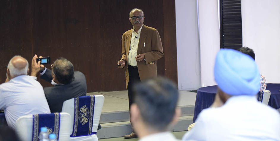 Prof. Khanna touched upon a few innovative ways for carbon capture, utilization and storage. In his opinion, bio fuel could be a good substitute for fossil fuel in terms of long term sustainability. Bio-butanol is better than ethanol and methanol as a transportation fuel. This can be produced economically by mixing biomass and agriculture & dairy waste in bio-refineries. Both public and private investors should set up bio-refineries all over the country as part of the waste to wealth program. Prof Khanna mentioned that in coming years, food versus fuel competition is foreseen for judicious utilization of agricultural land. Prof. Khanna also covered oil spillage management by degradation with optimum use of microbes.