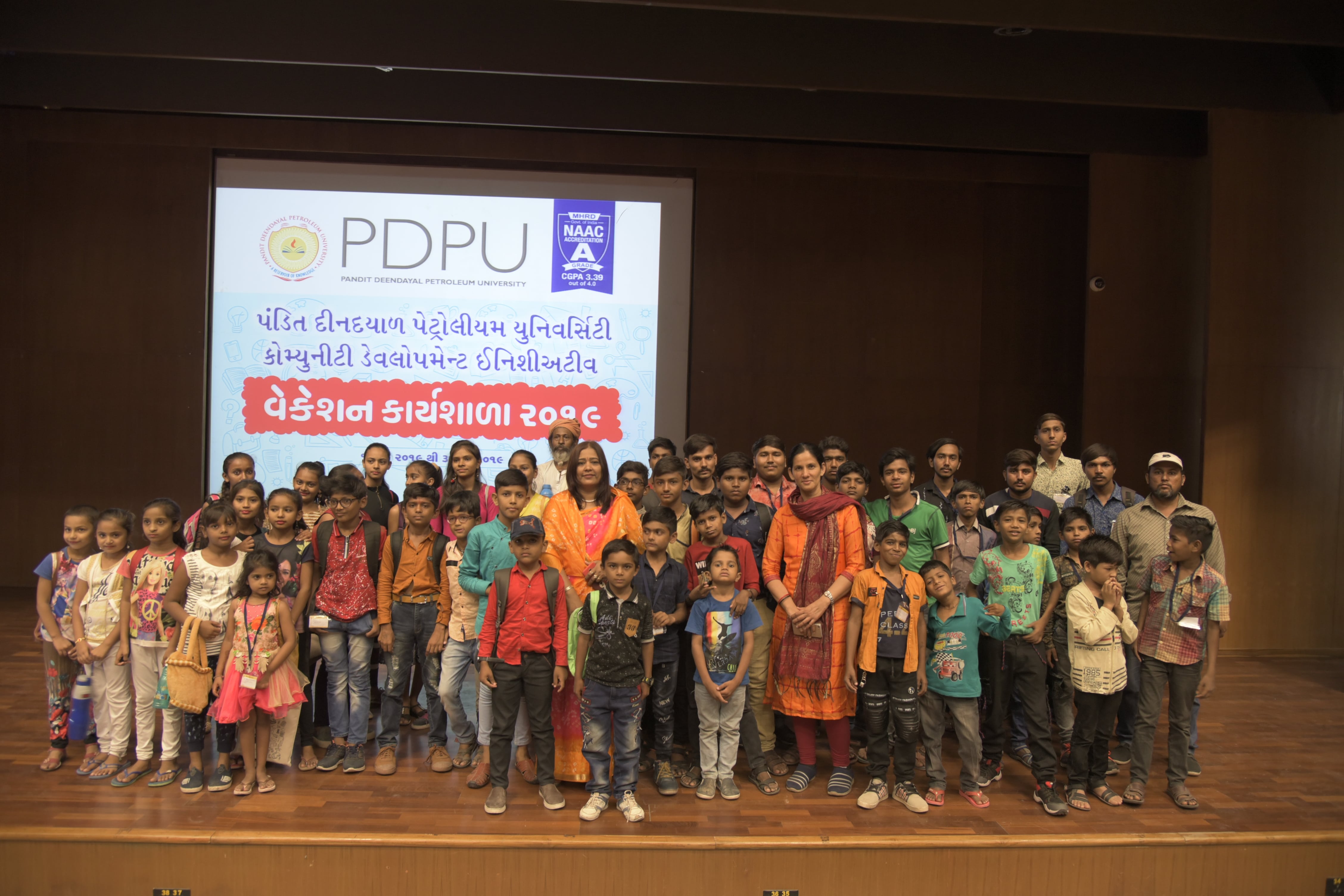 Office of Student Activities, Involvement and Leadership (OSAIL), PDEU organizes Vacation Workshops under Community Development Initiative (CDI) in every year. In its 9th edition in 2018, the programme included workshops such as Terracotta, Spoken English, Folk Dance, Art and Craft, Computer, Mehndi and Drama.